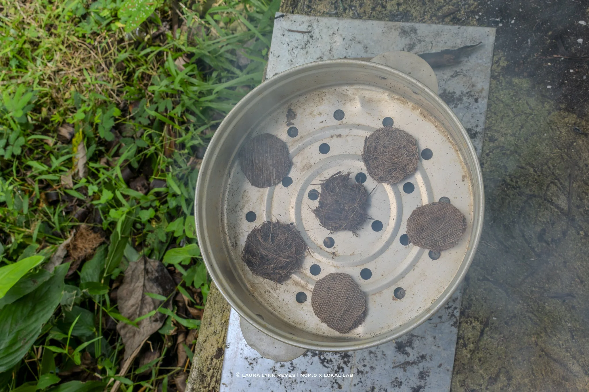 In response to Learnings From the first phase of the research, we Shifted the focus from coconut shells to husk fibers. During Material experiments We USed Only Locally Accessible Infrastructure To Explore Practical Solutions– Crucial Given the Islands Ongoing Recovery from Typhoon Odette in 2021.