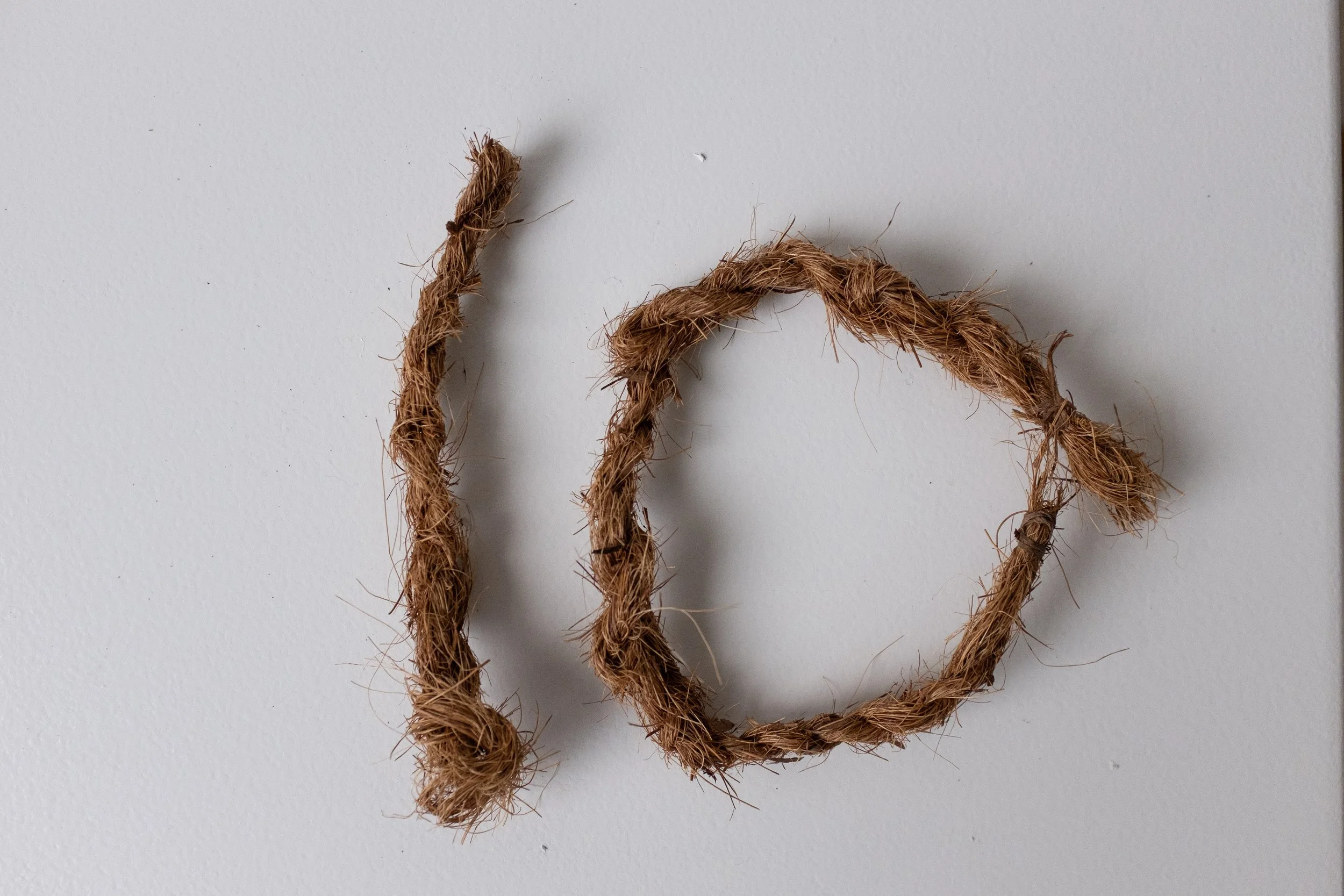 Husk Fibres Twined into Rope Samples, Even without prior skills And Short fibers showed High durability and strength. Existing applications range from doormats to Household GOods.